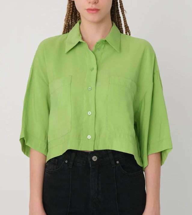 Önden düğmeli ve crop tarzda üretilen gömleğin iki adet açık tasarlanmış mega boy cepleri bulunur. Truvakor kolları bol ve yapışmayan bir görüntü ile tasarlanmıştır. Kol boyu dirsek altına kadar uzanır. %84 modal ve %16 polyester içeren gömleğin yeşil rengi ilkbahar ile uyumunuzu yansıtacaktır. Anlaşmalı Yurtiçi Kargo ile gönderim sağlanmakta isteyenler için taksitli ödeme imkanı bulunmaktadır. Bahar yeşili çift cepli kısa kollu gömlek farklı renk seçenekleri ile https://www.addax.com.tr/ ‘da satışa sunulmaktadır. Addax ilk bahar renklerini taşıyan ürünleri ve farklı tasarımları ile sizleri bekliyor.