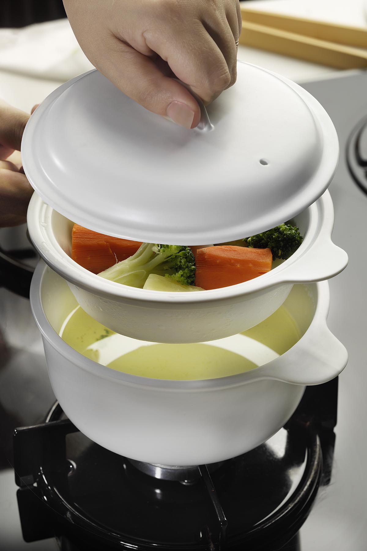 Yüksek ısıya dayanıklı bir adet tencere, buhar haznesi ve porselen kapaktan oluşan Kitahya porselen mammi porselen buharlı pişirici seti 3 parçadan oluşur ve sebzelerinizin sağlıklı yiyecekle dönüşmesini sağlar. Tencere buhar haznesi olmadığında 1050 cc, buharlı hazne dahil olduğunda 550 cc boyuta sahiptir. Hemen şimdi %38 indirimle satın alabilirsiniz.